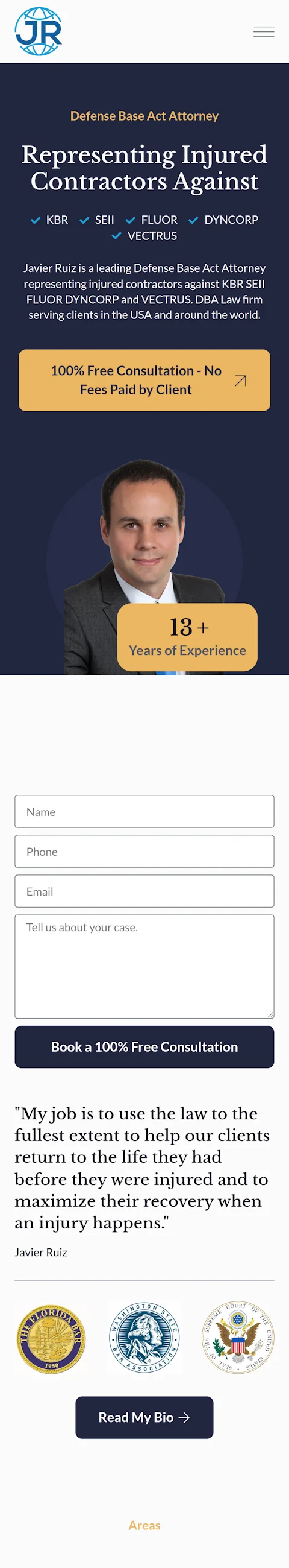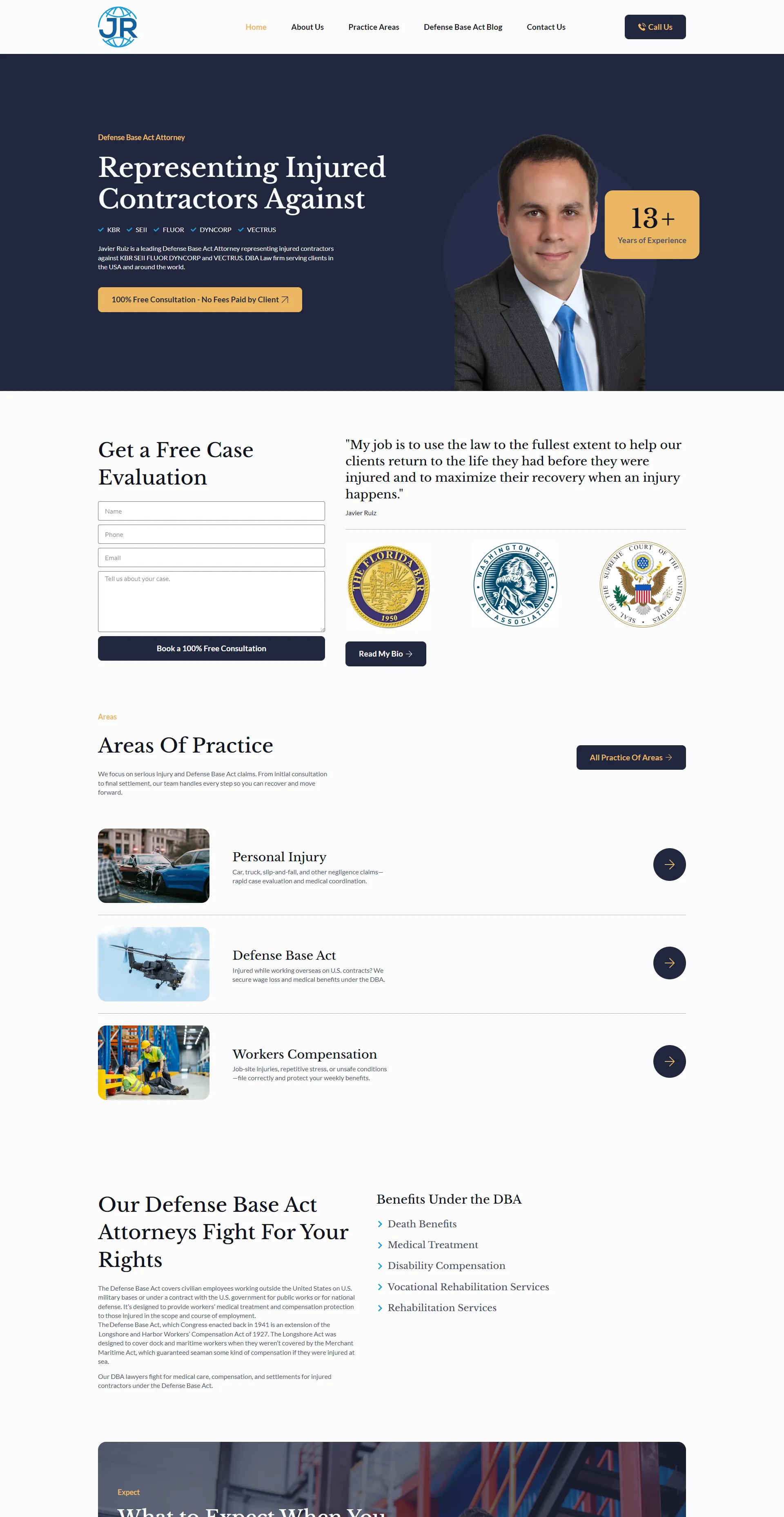 We partnered with DBA Injury, a specialized legal practice focused on Defense Base Act claims and personal injury representation, to build a fully custom, high-impact WordPress website using Elementor Pro that reflects the authority, credibility, and client focus of the firm.